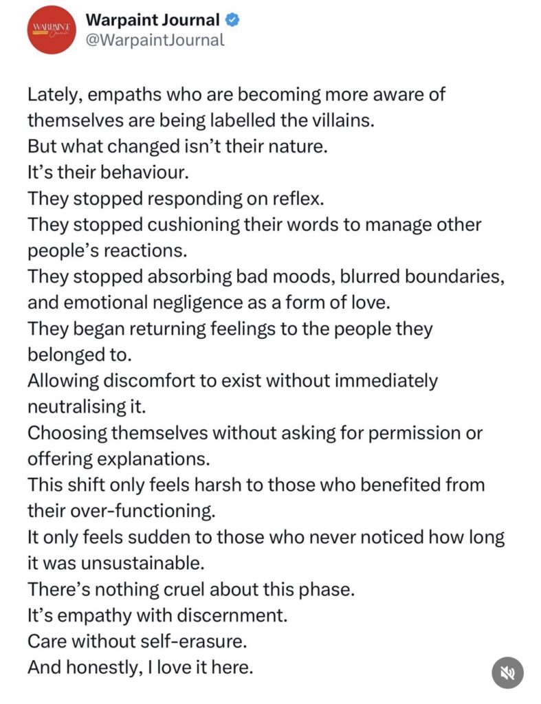 Stopped absorbing bad moods, blurred boundaries, and emotional negligence as “love.”