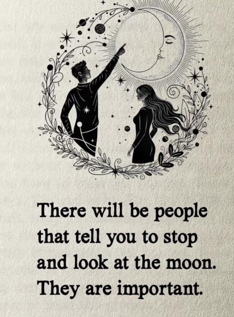 But the moon-pointers are doing something that cannot be automated, cannot be scheduled, and cannot be replicated by anyone who hasn’t learned to see the world through a particular kind of wonder. They carry a lens. A quiet, unshakeable belief that beauty is not a reward you earn after the work is done. It is the work. It is woven into the fabric of being alive, and it deserves your full attention, right now, in the middle of everything.